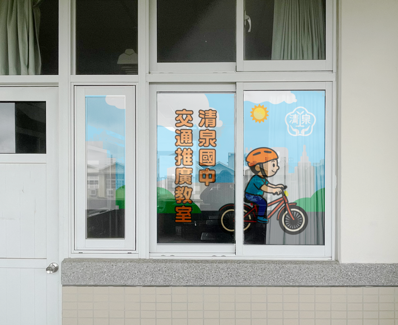 設計最終應用於校園、教室牆面與玻璃貼,讓交通安全不只是一次宣導,而是成為校園裡長期存在的提醒與陪伴。