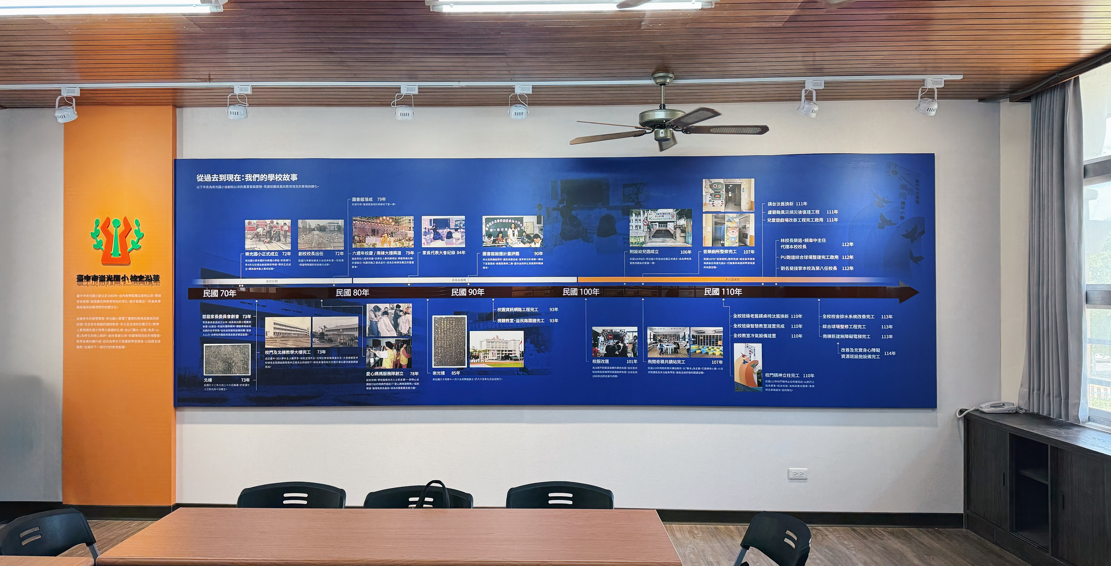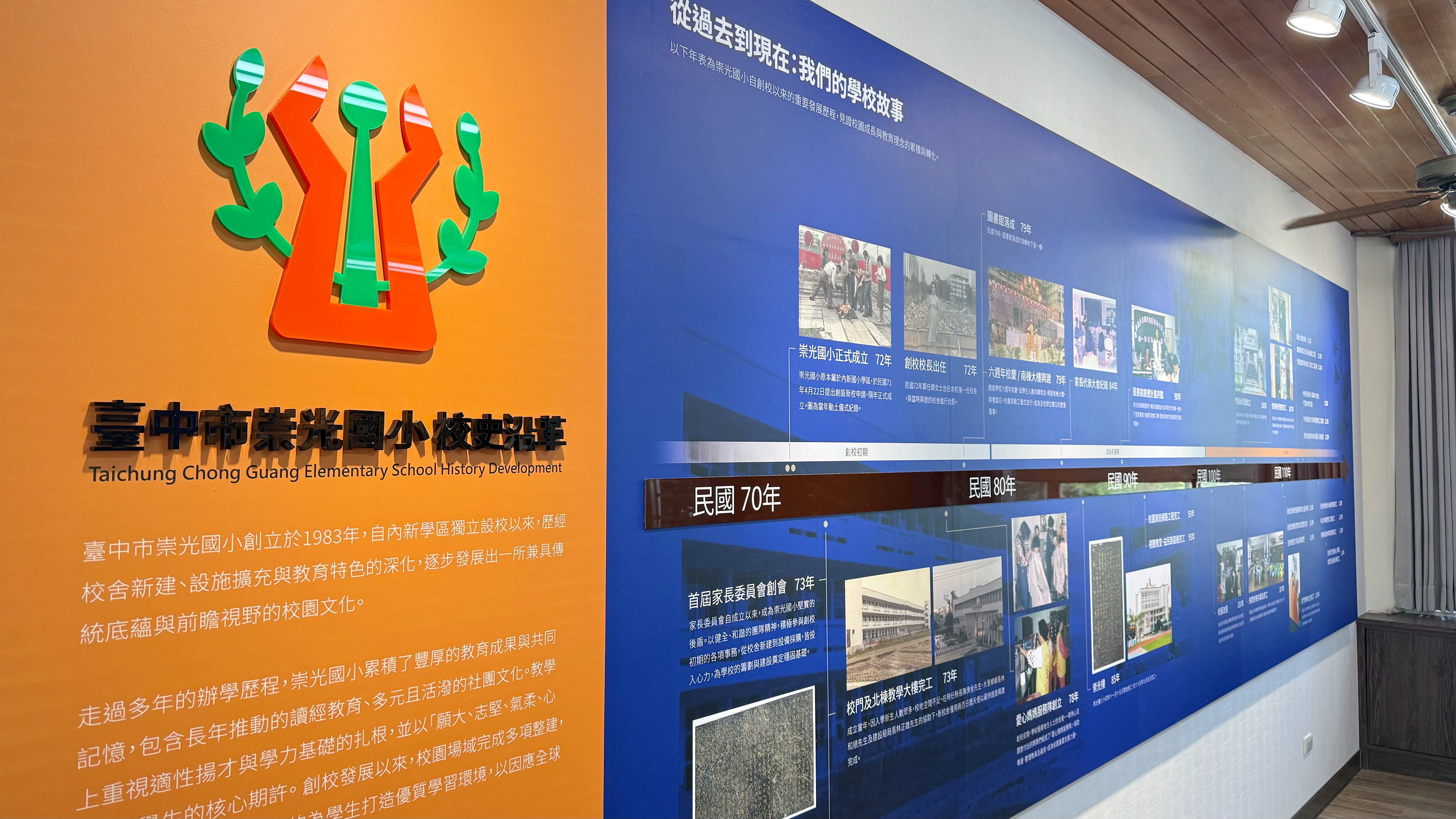 展示由校史概述與年表展開,帶領觀者認識崇光國小的重要發展歷程,彰顯其深厚辦學底蘊。